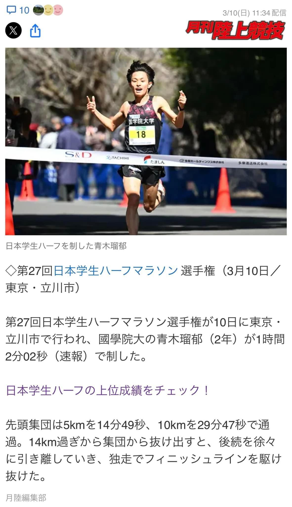 昨日の 第27回日本学生ハーフマラソン選手権において、 立腰トレーナーから身体開発指導を 受けている選手が独走で 優勝を果たしました! →https://news.yahoo.co.jp/articles/5e8a672b2be3aabeeeb32de355e8860be73bcdbd